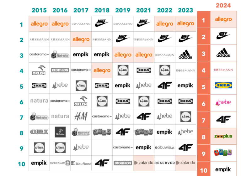 在波蘭本土市場,Allegro 堪稱絕對的霸主,地位難以撼動。多年來,其持續深耕本土,收獲了豐碩成果。根據OC&C Strategy Consultants Polska針對2500名波蘭消費者的調查,Allegro已經連續三年位居最受消費者歡迎的平臺榜首。這一榮譽背后,是Allegro長期以來在商品品質把控、價格競爭力塑造、購物體驗優化等方面不懈努力的結果。
