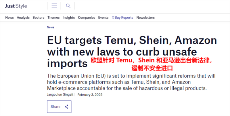 首先做出反應的是歐盟,今年2月初,歐盟委員會就提出,要對現有進口政策進行修改,對大量低價跨境包裹實施更嚴格的監管。