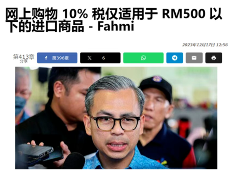 東南亞另一大重要市場——馬來西亞,就早早對低價進口商品免稅政策下手,2023年年底,馬來西亞關稅局宣布,將從2024年1月1日起,對所有在線上銷售并從國外進口到馬來西亞的低價值商品(價值低于500令吉)加征10%的低價商品稅。