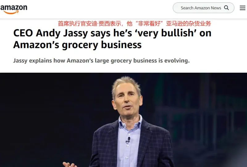在4月份致股東的年度信函中,亞馬遜首席執(zhí)行官安迪·賈西(Andy Jassy)還對(duì)食品雜貨業(yè)務(wù)保持沉默。但現(xiàn)在,他開(kāi)始公開(kāi)談?wù)撨@一業(yè)務(wù)的戰(zhàn)略和業(yè)績(jī)。