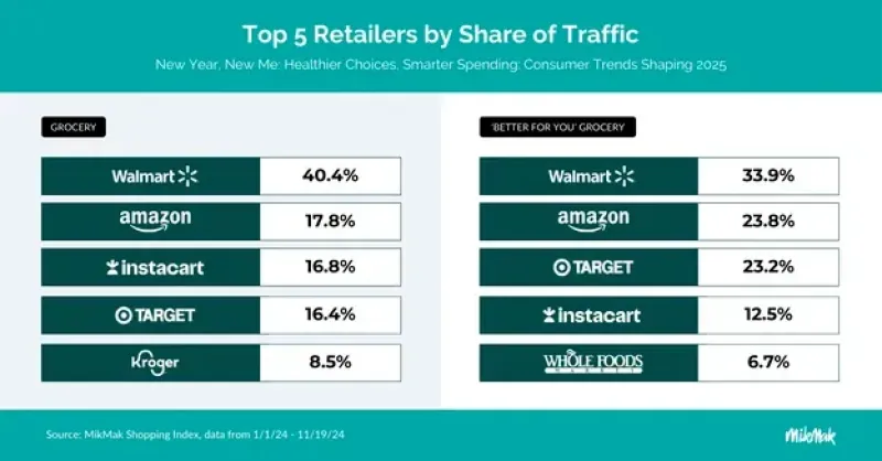 值得一提的是,背靠強(qiáng)大的線下門(mén)店網(wǎng)絡(luò),沃爾瑪食品雜貨業(yè)務(wù)略勝一籌。去年年底MikMak發(fā)布的購(gòu)物指數(shù)顯示,在美國(guó)在線雜貨零售商中,沃爾瑪以40.4%的流量份額遙遙領(lǐng)先,而亞馬遜僅占比17.8%。