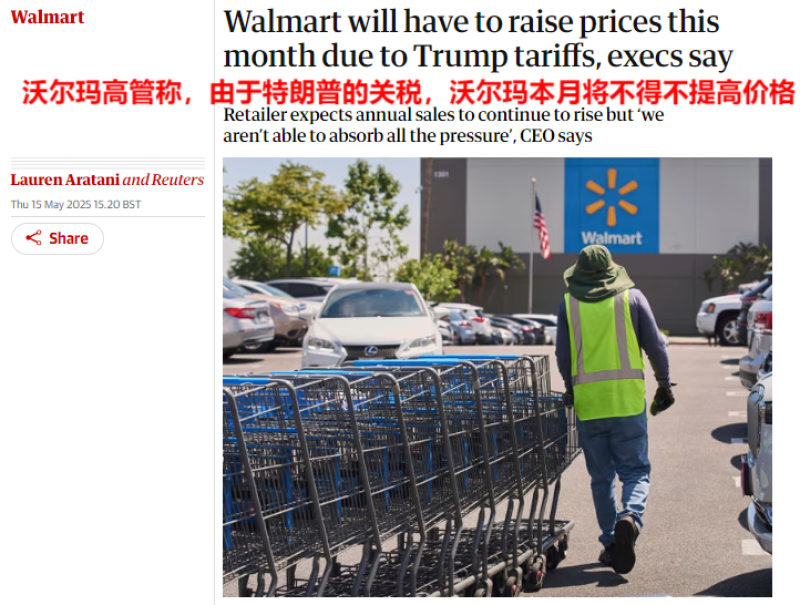 在中美聯合聲明大幅下調關稅后,美國部分零售巨頭依然發出了漲價警告。消費電子零售商百思買稱,公司已上調部分商品價格,以此抵消關稅帶來的成本影響;沃爾瑪表示,預計5月底或者6月,將上調部分商品價格。