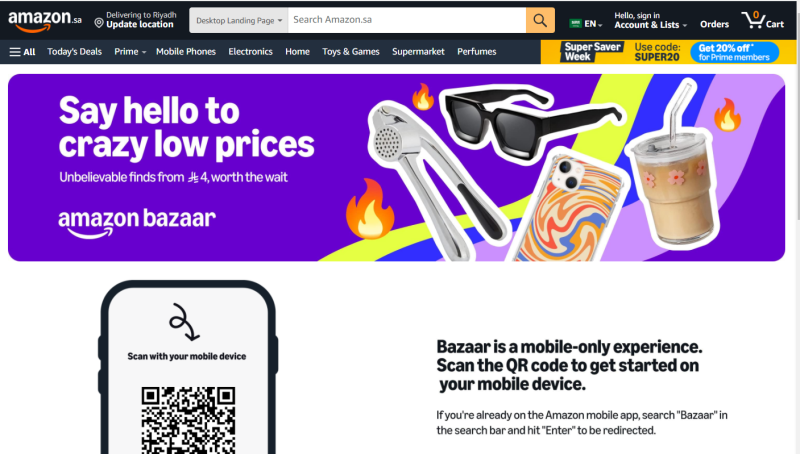 亞馬遜低價商城進(jìn)入沙特?圖源:amazon.sa