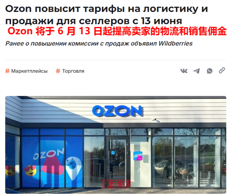 Ozon將提高賣家傭金 圖源:shoppers.media
