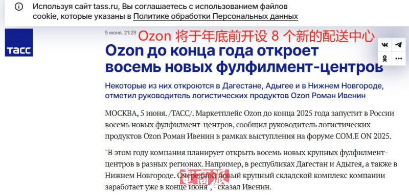 日前有消息稱,Ozon今年計劃在達吉斯坦共和國、阿迪格共和國以及下諾夫哥羅德等不同地區開設8個新的大型配送中心,加快物流網絡擴張步伐。