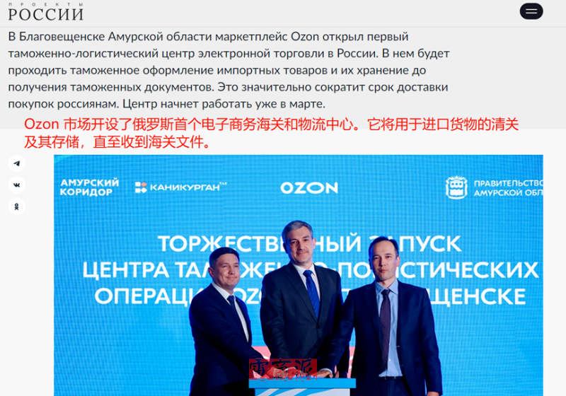 Ozon開設海關物流中心 圖源:rg.ru