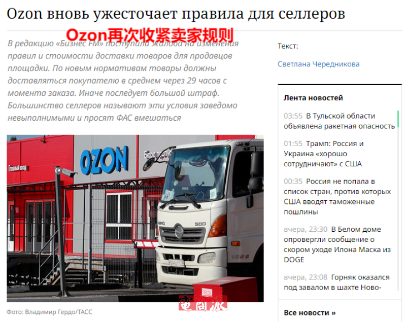 Ozon收緊配送時效 圖源:bfm.ru