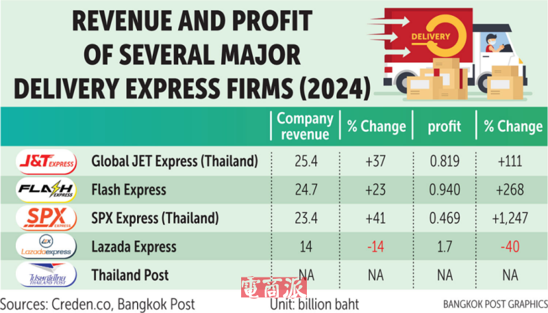 幾大主要快遞公司的業績數據圖源:Bangkok Post