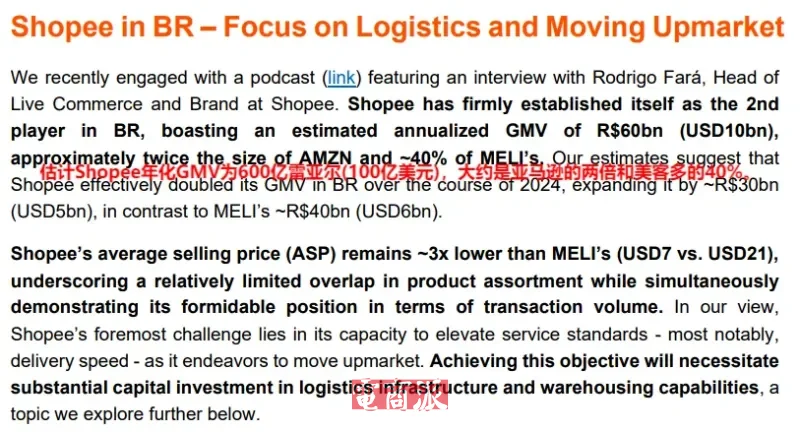 2024年,Shopee通過物流網(wǎng)絡升級,擴展分揀中心、提升攬收效率、擴展周六配送路線及寄件點數(shù)量等方式,將巴西主要城市的配送速度縮短40%。物流速度越快,市場競爭力越強。