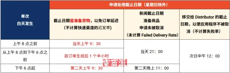 不過,對于6月9日之前的規(guī)定,仍需遵守交貨給發(fā)貨單位的截止日期,即針對下午6點之前的訂單,需要在當天晚上9點之前完成移交;針對下午6點之后生成的訂單,需要在次日晚上11點之前完成移交。