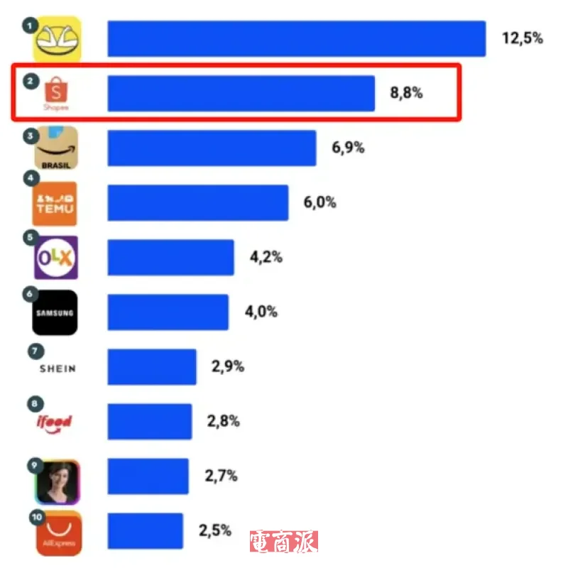 Shopee穩(wěn)居巴西電商第二 圖源:Conversion