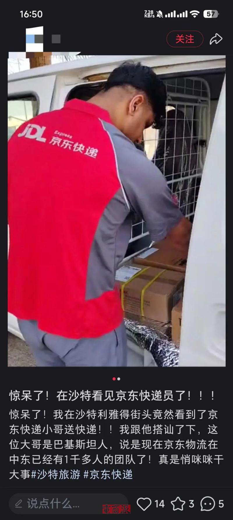 據了解,在沙特阿拉伯的利雅得街頭已出現身著京東快遞制服的快遞員忙碌配送的身影。一位接近京東的人士透露,目前京東物流在沙特已組建起上千人的團隊。盡管京東物流官方對此回應較為低調,表示“暫不評論,后續將同步信息”。
