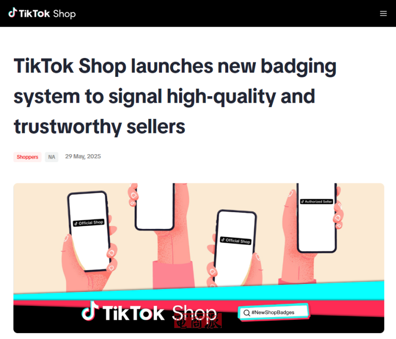 6月14日消息,TikTok Shop宣布上線全新徽章系統(tǒng),以幫助用戶識別值得信賴、信譽良好的賣家,增強平臺透明度與購物體驗。此次改版共設(shè)立五種徽章類型,包括新增的“官方店鋪”、“授權(quán)賣家”、“金星賣家”、“銀星賣家”,以及保留的“頂級品牌”徽章。TikTok Shop表示,每家店鋪在任意時間僅能擁有一個徽章,用以清晰傳達其資質(zhì)或信譽等級。