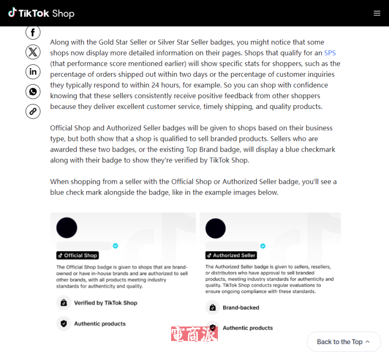 其中,“金星賣家”與“銀星賣家”徽章將替代舊有的星級店鋪計劃,專為獨立商家量身打造。這些店鋪需滿足一系列要求,包括上傳品牌標識、店鋪表現(xiàn)評分(SPS)達到90%或以上、正面商品反饋率達到80%以上,并至少擁有一個活躍商品列表。“官方店鋪”與“授權(quán)賣家”徽章則授予具有品牌銷售資質(zhì)的商家,用以區(qū)分正規(guī)授權(quán)渠道。這兩類徽章與“頂級品牌”徽章均將配有藍色勾選標識,表明其身份已通過TikTok Shop官方驗證。