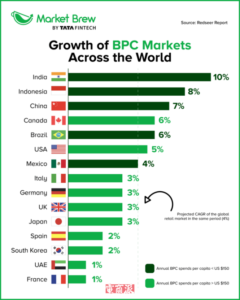 印度美妝市場增長率全球第一?圖源:Market Brew