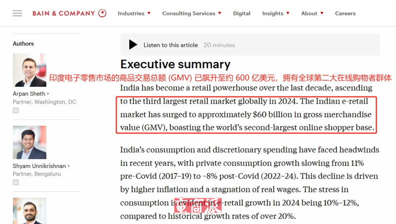 印度電商市場蓬勃發(fā)展?圖源:bain