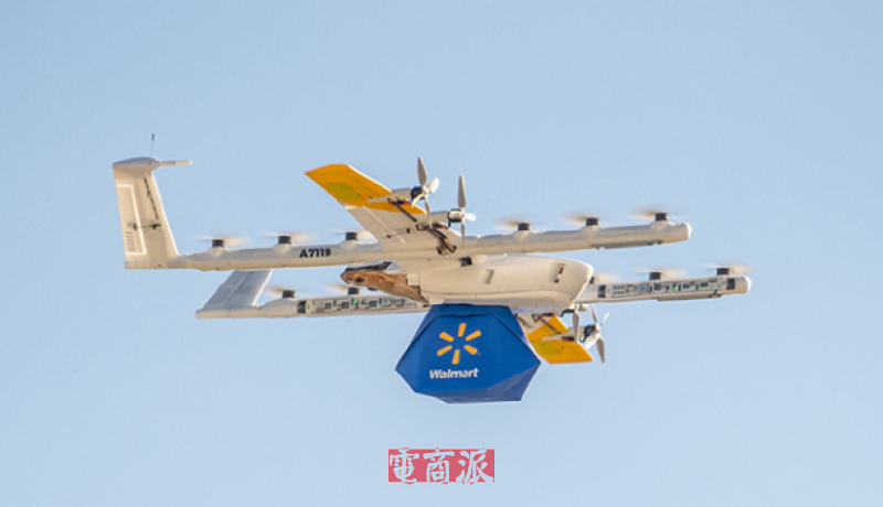 除了常規物流配送,一些平臺也積極發展其他前沿的配送方式,比如無人機送貨。在北美市場,亞馬遜和沃爾瑪便是兩大致力于投資無人機送貨的電商巨頭。