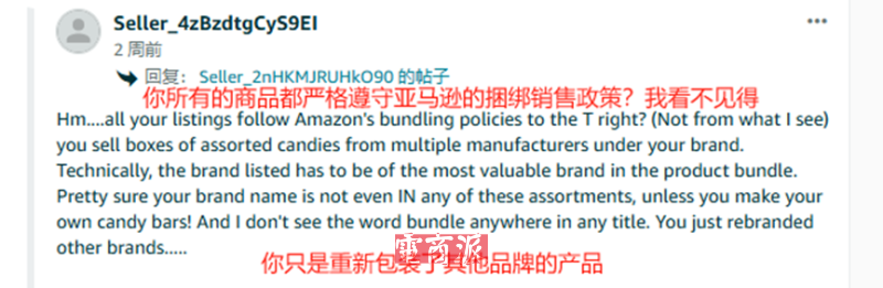 對于賣家A的說法,部分賣家持質疑態度,一位賣家就回復道:“你可能是銷售由不同制造商生產的各種產品,并冠以你自己的品牌……你只是重新包裝了其他品牌的產品。”