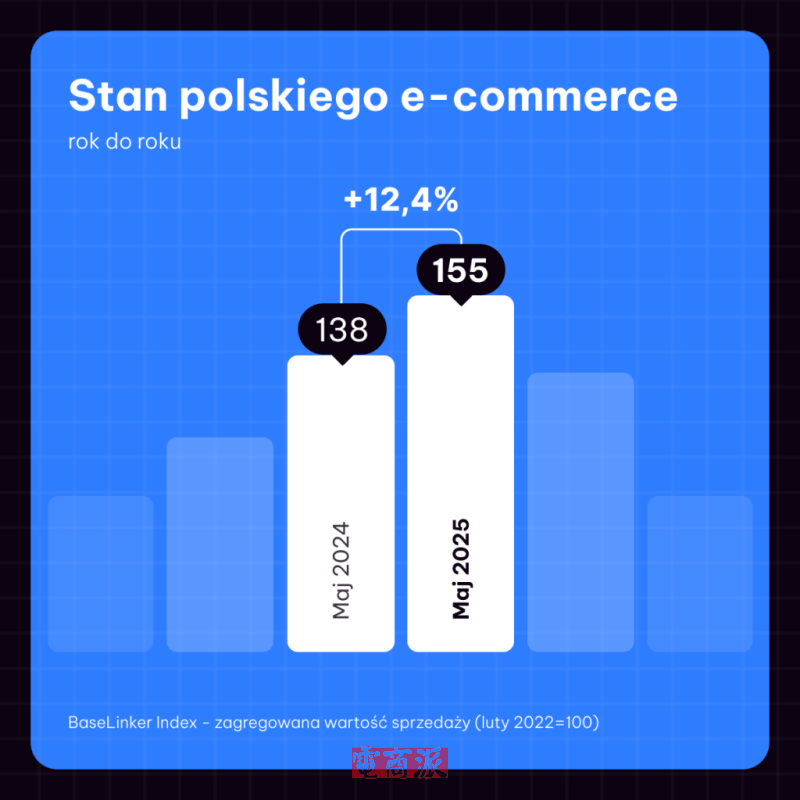 近日,歐洲在線銷售管理和自動化系統BaseLinker平臺發布了波蘭電商市場的最新數據,數據顯示,2025年5月波蘭電商指數達到155點,較去年同期上漲12.4%,顯示出市場的持續成熟與國際擴張勢頭。