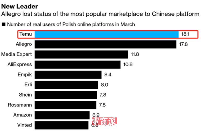 Temu波蘭真實用戶數量超越Allegro 圖源:Bloomberg