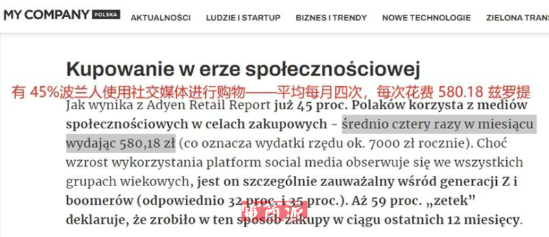 45%波蘭消費者用社媒平臺購物 圖源:mycompanypolska