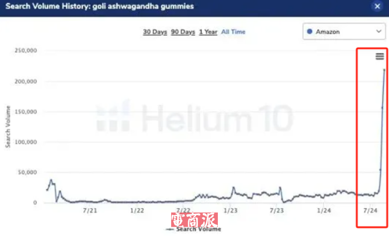 亞馬遜平臺的搜索量激增 圖源:Hellum 10