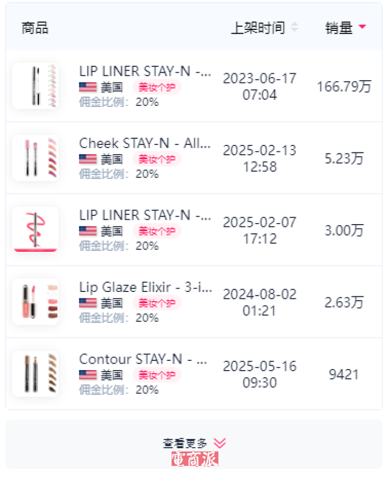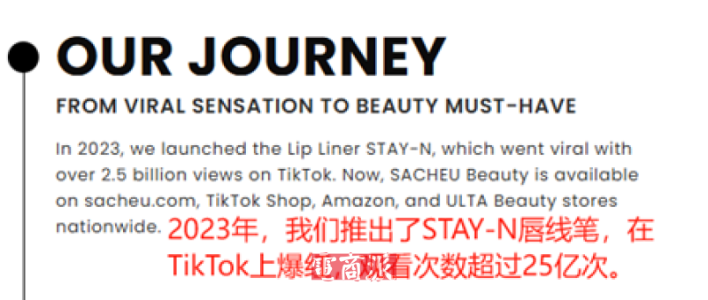 品牌官網數據顯示,目前一條“如何利用Lip Liner Stay唇線筆打造3D唇妝”的視頻在TikTok的播放量已經超過25億次,直接帶動亞馬遜店鋪同款產品銷量增長300%,單品全年銷售額超過4000萬美金(約合人民幣2.9億),其中大部分來源于TikTok。