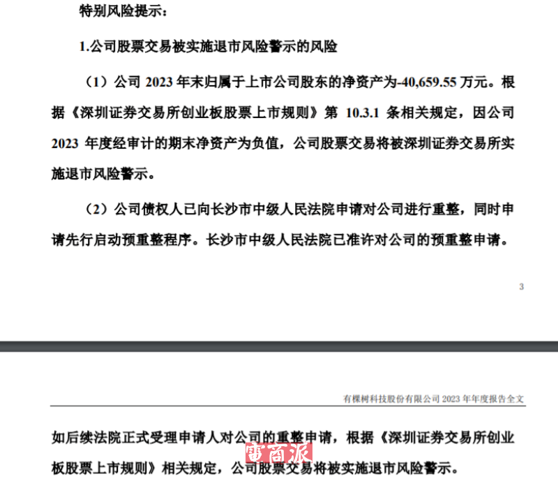 此前面臨退市風險?圖源:有棵樹2023年年度報告