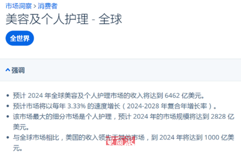 Statista發布的數據顯示,預計到2025年,全球美妝個護市場收入將達到6771.9億美元,未來五年該數值還將以3.37%的年復合增長率繼續保持增長。
