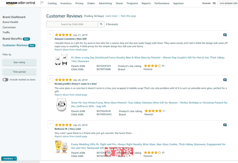 亞馬遜買家評論頁面 圖源:sellercentral.amazon