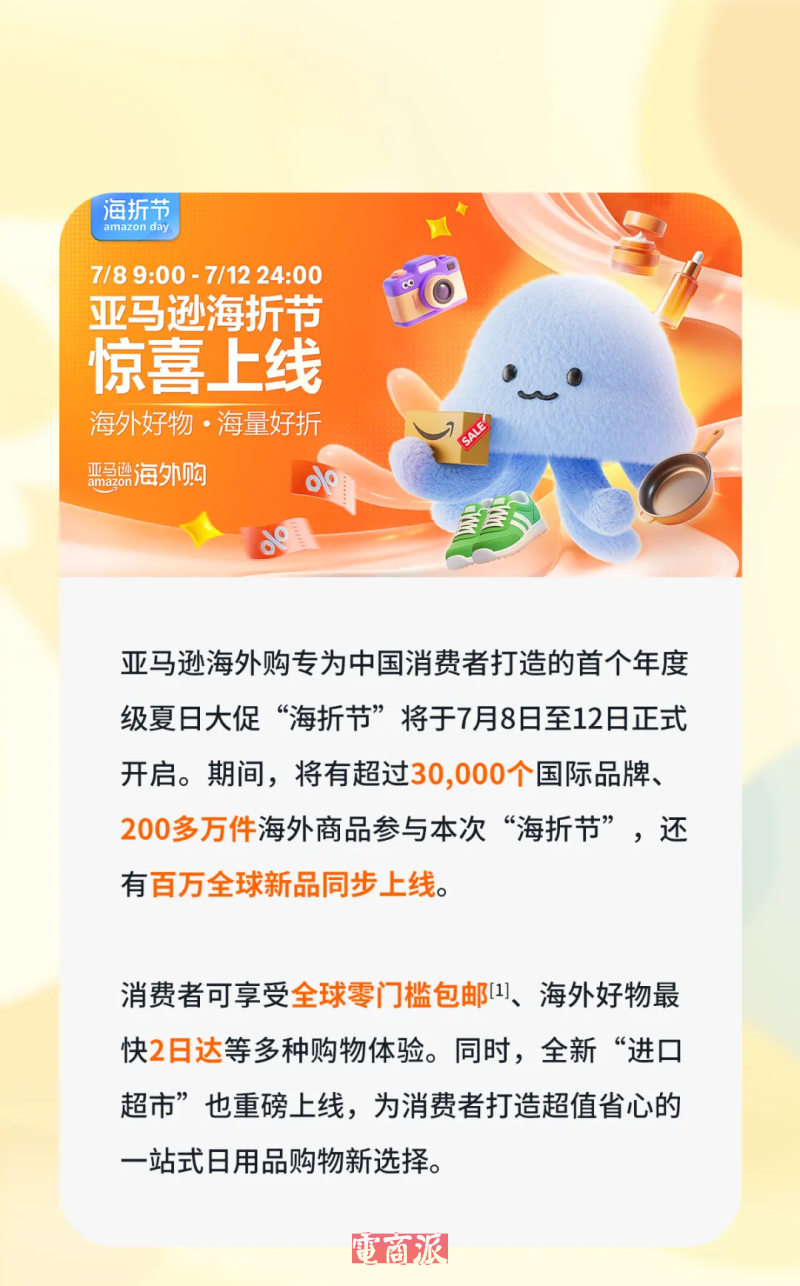 亞馬遜中國副總裁、亞馬遜海外購中國及亞馬遜新加坡電商負責人李巖川表示:“‘海折節’是亞馬遜海外購專為中國消費者量身打造的全新年度級夏日大促,是我們對進口電商消費者新需求與新偏好的深度響應,也是我們探索更好服務本地消費者的重要一步。依托亞馬遜在全球選品、價格與物流方面的綜合優勢,亞馬遜海外購希望將‘海折節’打造為中國海淘愛好者的年度消費節點,持續為他們提供更輕松、更便捷的跨境購物體驗。”