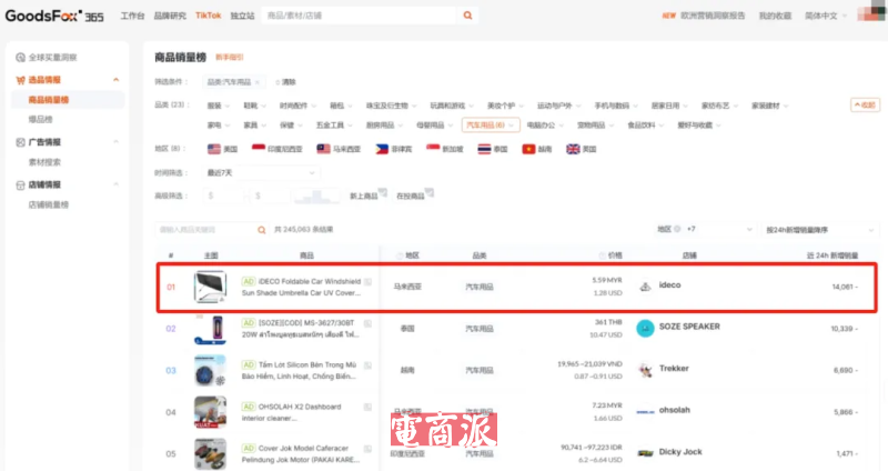 實際上,這類產品并不是第一次受到消費者的喜愛,早在今年1月,TikTok馬來西亞小店ideco旗下的一款汽車擋風玻璃遮陽傘就賣爆了,光是在2024年12月31日這一天,就賣出了超14000件的驚人數據