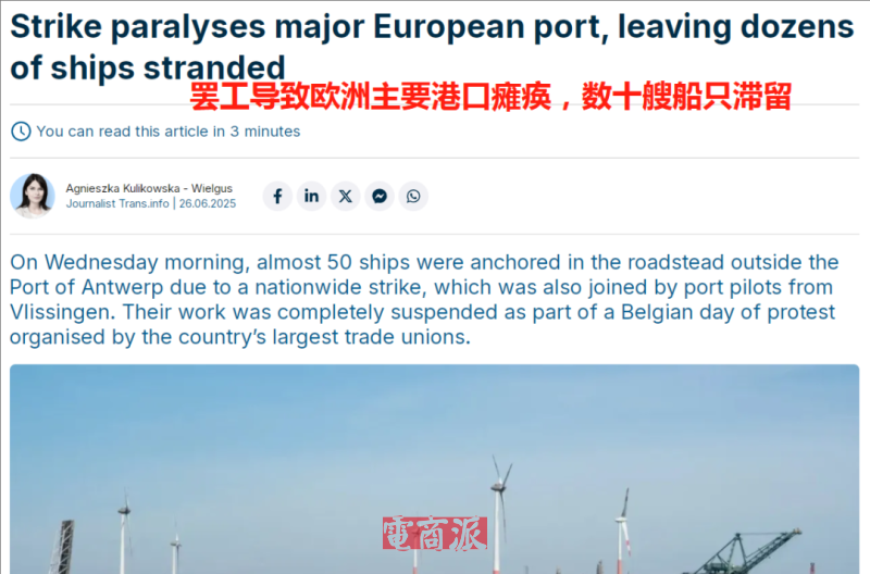 港口擁堵的連鎖反應正逐漸顯現。漢堡港因堆場飽和,已暫停接收進口冷藏箱;安特衛普港的鐵路疏運系統因罷工癱瘓,導致內陸運輸延誤率飆升至65%。整個歐洲的物流供應鏈,宛如一張被拉扯得千瘡百孔的大網,面臨著巨大的壓力。