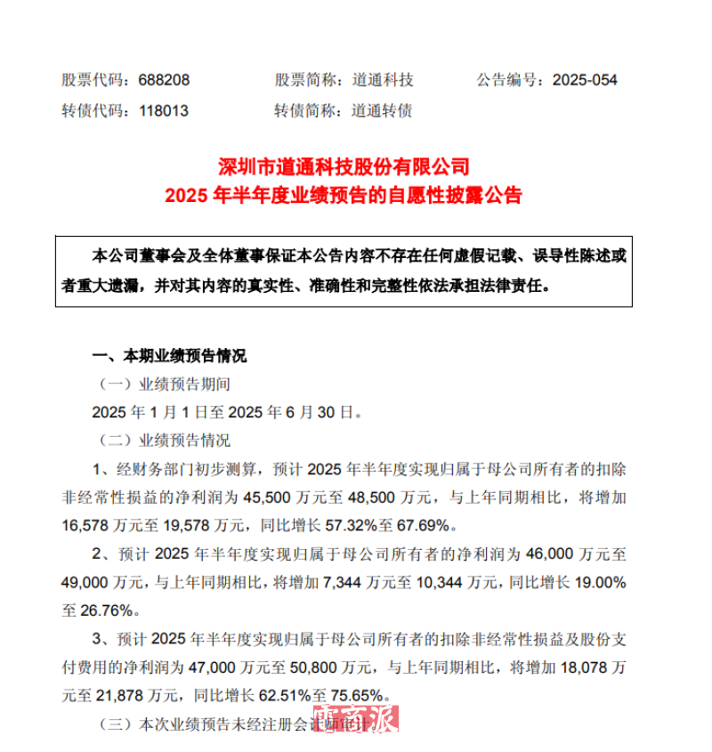 7月6日消息,道通科技發(fā)布2025年半年度業(yè)績預告。