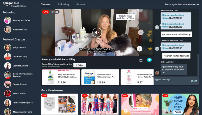亞馬遜直播功能 圖源:Amazon