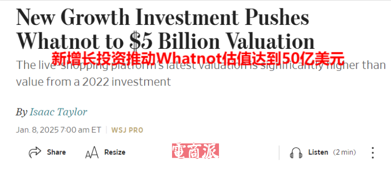 Whatnot估值近50億美元 圖源:WSJ