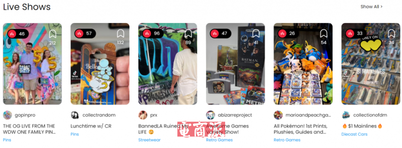 Whatnot便是抓住了用戶這一心理,加上Whatnot初期售賣的東西,大多是收藏品,本身就具有一定的娛樂和消費屬性。這種情形類似于抖音的拆卡、拆盲盒直播,很多人哪怕不買也會進來看一看,看著看著可能就買了。