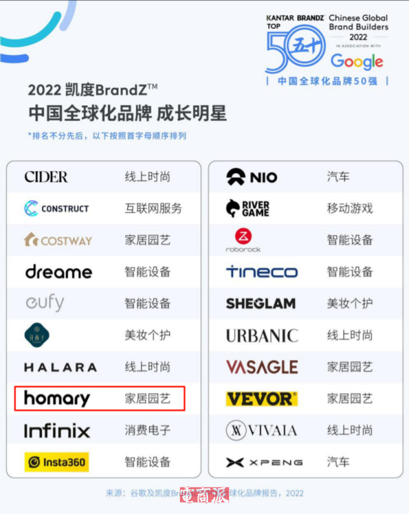 如今的Homary早已今非昔比,在加拿大、美國等國家的中高端家居市場中占據了重要的一席之地,產品成功進入50多個國家和地區的市場,成為名副其實的全球性家居品牌。從銷售業績來看,Homary的年營收突破3億美元(約合人民幣21億)。此外,Homary還榮登《2022凱度BrandZ中國全球化品牌成長明星榜》,在2023年又登上《2023凱度BrandZ中國全球化品牌50強》。