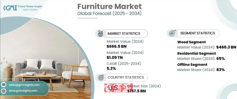 來自Global Market Insight發布的數據顯示,2024年,全球家具市場規模估計為6665億美元,2025年有望增長至6938億美元,而這一數字到了2034年或將突破萬億美元大關,達到驚人1.09萬億美元,復合年增長率為5.2%。這一增長趨勢主要得益于全球經濟的復蘇、中產階級的擴大以及人們對生活品質的追求,不斷增長的市場規模和電商滲透率,為家居品牌出海創造了極為有利的市場環境。