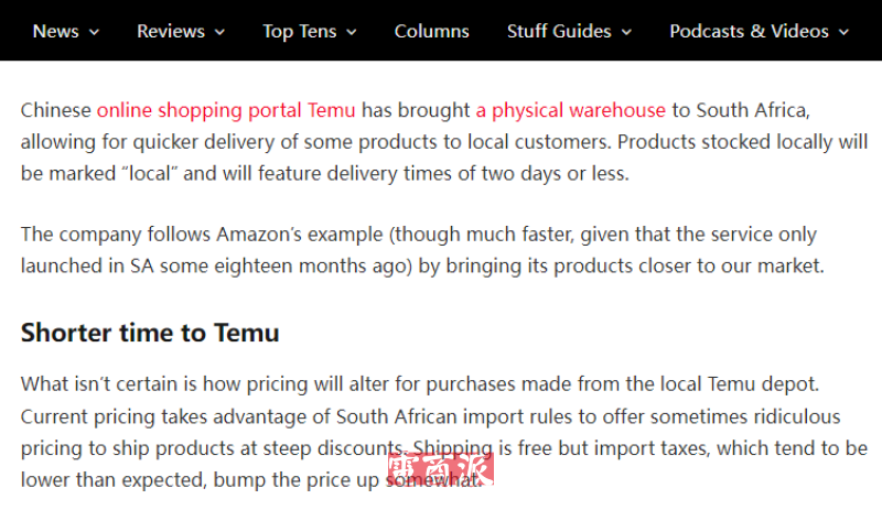 此次建倉標志著TEMU自2024年1月進入南非市場以來,首次在當地進行實質性物流布局。平臺最初通過與南非本地物流商合作,將中國直采商品以低價出售,迅速吸引大量消費者。憑借極具競爭力的價格策略和大規模在線廣告投放,TEMU在南非及其他多個海外市場迅速走紅。TEMU此番在南非設立倉庫,顯示其對該市場的重視程度持續提升,同時也可能進一步加劇與本地企業的競爭壓力,鞏固其在南非電商市場的領先地位。
