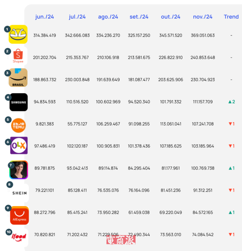 2024年5月,Temu開始布局巴西市場,并于同年6月初正式進(jìn)入,在巴西市場一路高歌猛進(jìn)。2024年11月,Temu在巴西的訪問量超1.07億次,躋身市場前五;2025年3月份訪問量數(shù)據(jù)超越亞馬遜登上第三名的寶座后,4月再次加速,成功趕超Shopee登頂?shù)诙?/span>。在拉美首站哥倫比亞,Temu的表現(xiàn)同樣強(qiáng)勁,上線后的短短半年時(shí)間里,Temu哥倫比亞用戶增長超過400%。