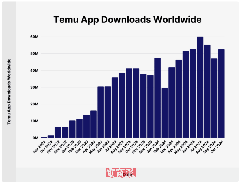 Temu App下載量數(shù)據(jù) 圖源:backlinko.com
