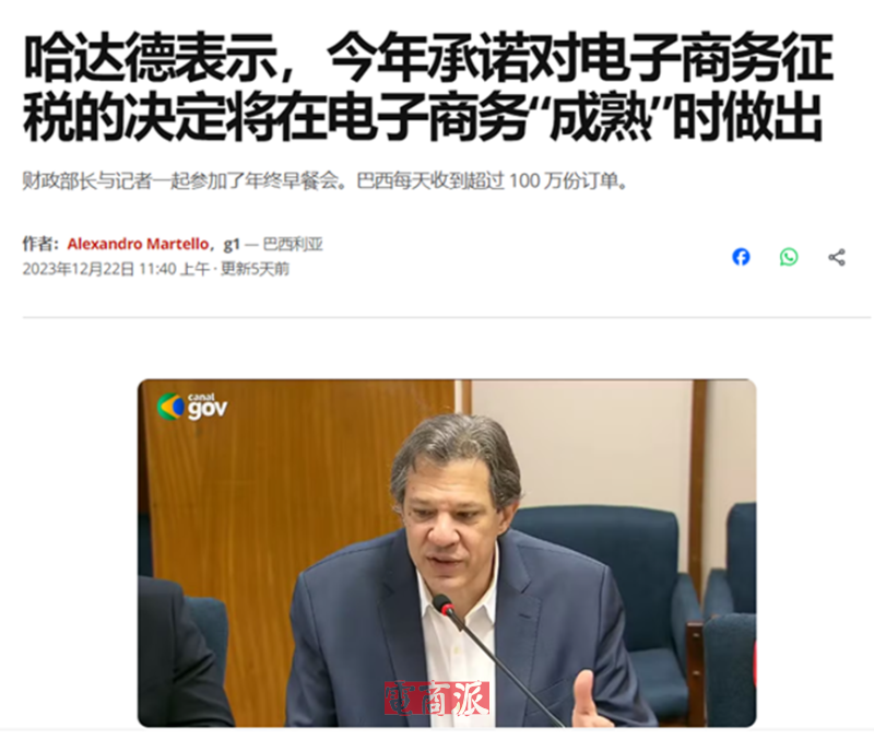 結果,等到2023年年底,巴西財務部長費爾南多·哈達德又公開表示,最初承諾在2023年執行的低價商品聯邦稅將暫停生效,至少要等巴西電商市場和政治方面更“成熟”的時候再出臺。