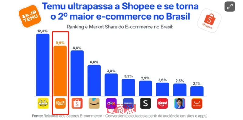 Temu躍升巴西第二大電商平臺 圖源:Chinesellers