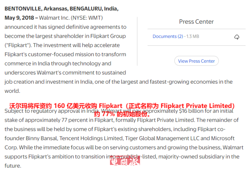 沃爾瑪收購Flipkart 圖源:corporate.walmart