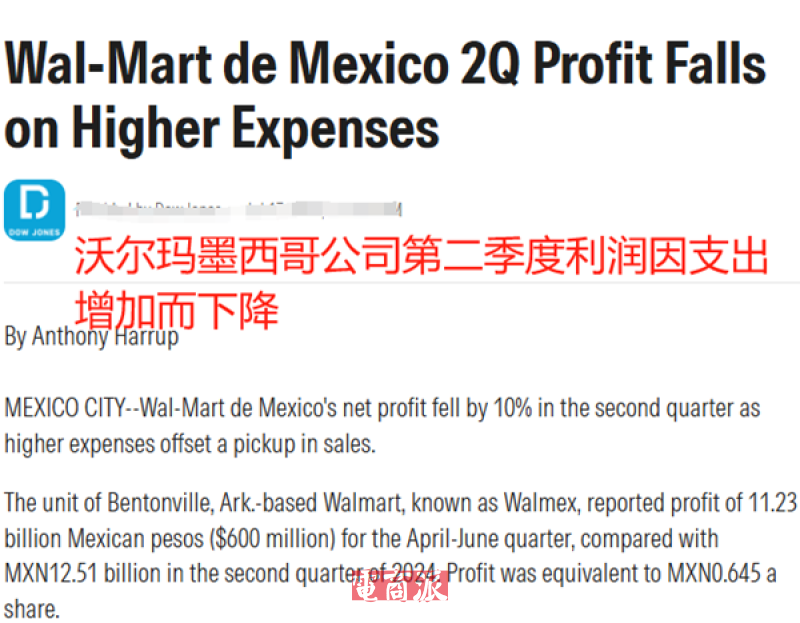 數據指出,今年二季度,沃爾瑪墨西哥子公司的支出較去年同期增長了12%,而這筆為提升市場份額而進行的價格競爭投資抵消了新業務和中美洲供應鏈效益帶來的利潤,致使利潤下滑。