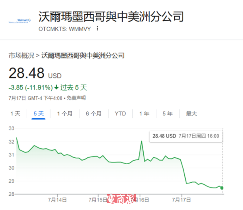 沃爾瑪墨西哥股價下滑 圖源:Google