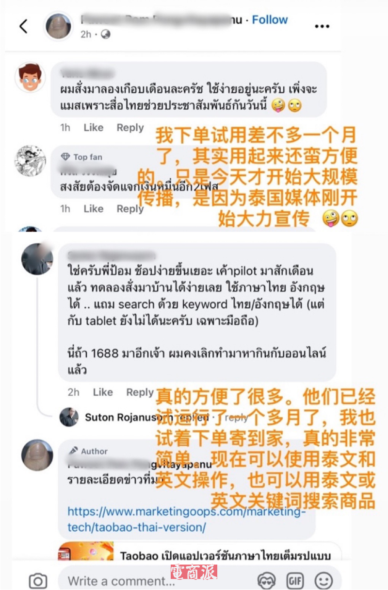 社媒上泰國消費者對淘寶泰語版的好評?圖源:淘寶