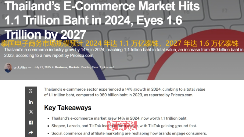 泰國電商市場規模持續上漲?圖源:thailand-business-news
