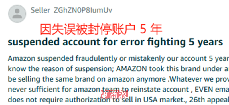 ZGh聲稱其賬號被錯誤關停5年 圖源:亞馬遜賣家中心